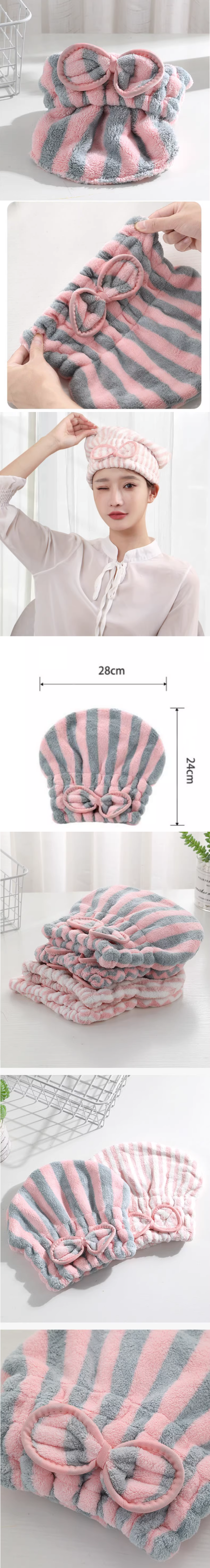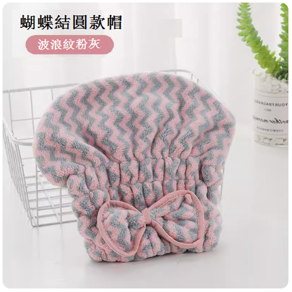 爆款包頭巾免吹幹發帽(波浪紋灰粉)