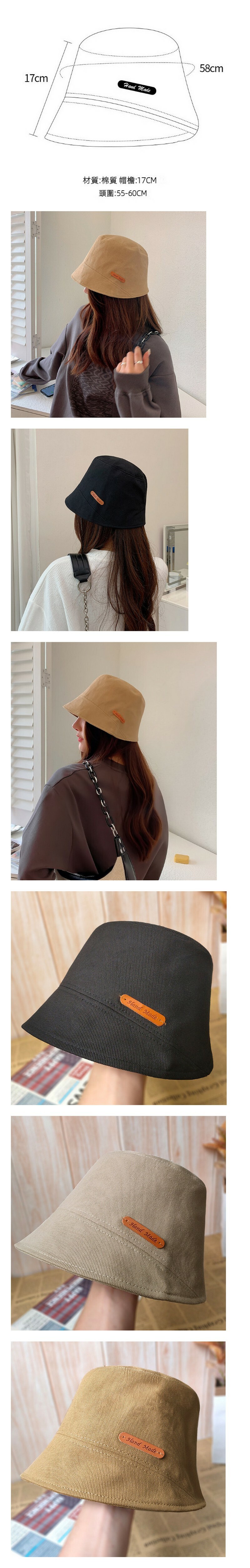 熱推遮陽百搭漁夫帽(E-183斜邊皮標-黑色)