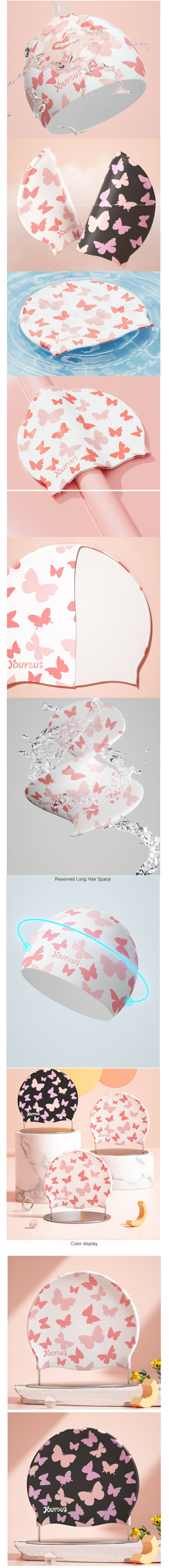爆款泳帽女士防水不勒頭(深粉蝴蝶【夏日花開系列】+防霧泳鏡)