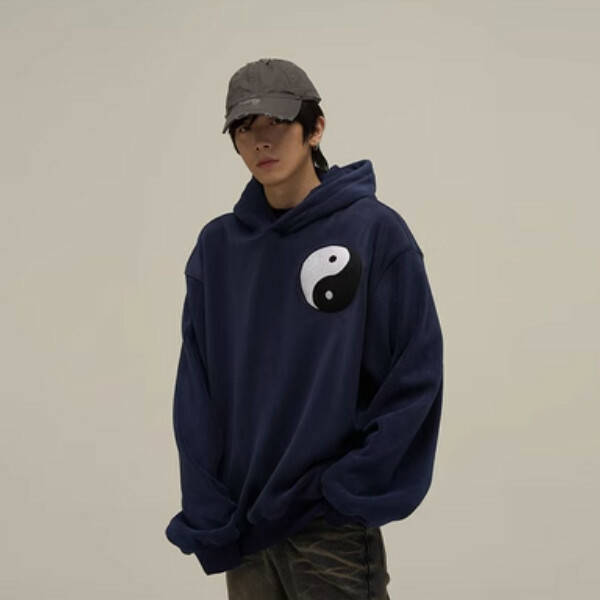 爆款太極刺繡搖粒絨連帽衛衣【寶藍色M-XL碼,下單後與客服確認發貨尺碼】