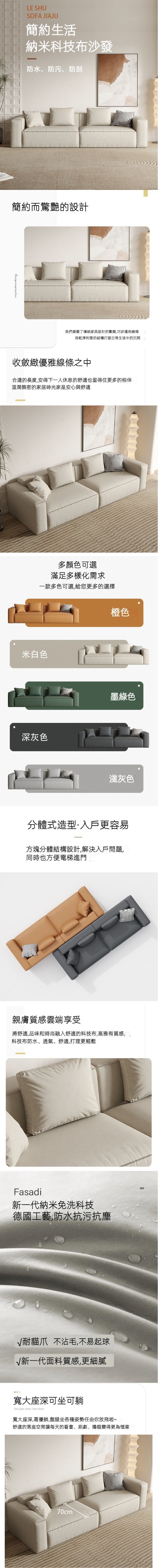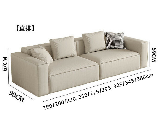 爆款科技布直排沙發(米白色-海綿款)(2.95米)