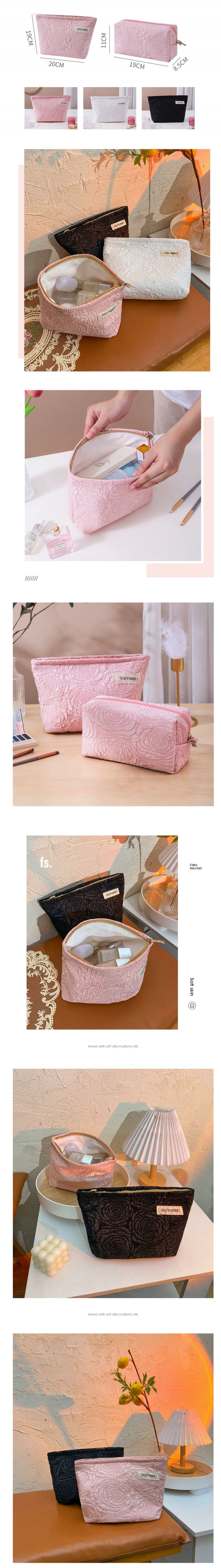 爆款氣質化妝包收納袋(黑色八角包玫瑰泡泡提花 長19cm高11cm寬8.5cm)