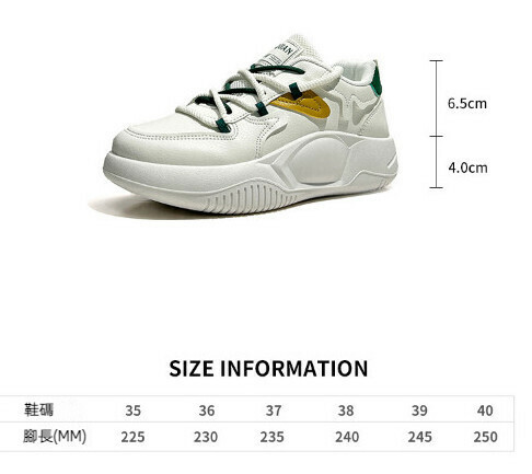 爆款厚底增高小白鞋(米綠色)【35-40碼】【下單後聯絡客服確認發貨尺碼】