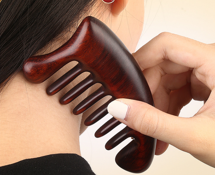 爆款加厚小葉紫檀木按摩梳(八齒三角)(尺寸:長101寬60mm)