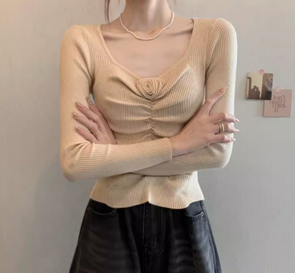 熱推立體花朵針織衫上衣(杏色均碼)