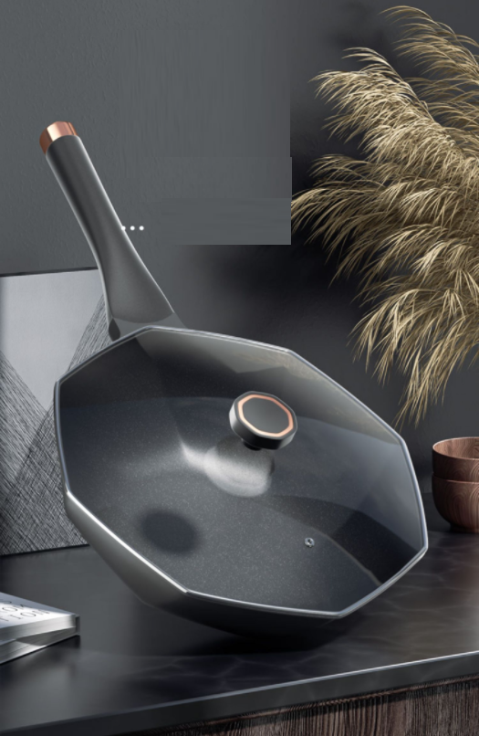爆款三層加厚耐磨抗刮八角鍋不粘麥飯石平底炒菜鍋加蝴蝶鏟電磁爐燃氣灶專用28cm