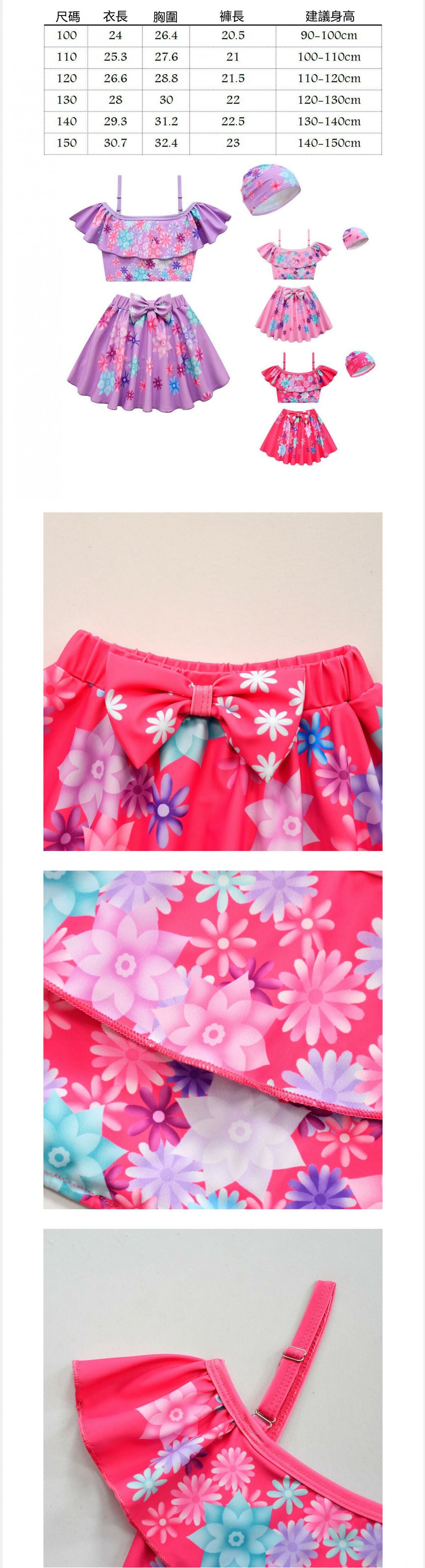 爆款兒童泳裝三件套(20192玫紅+364#)(尺碼:100-150)(下單後聯絡客服確認發貨尺碼)