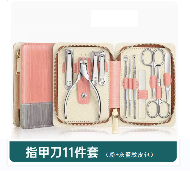 爆款修剪腳甲工具(XL不鏽精鋼初桃粉12件套)