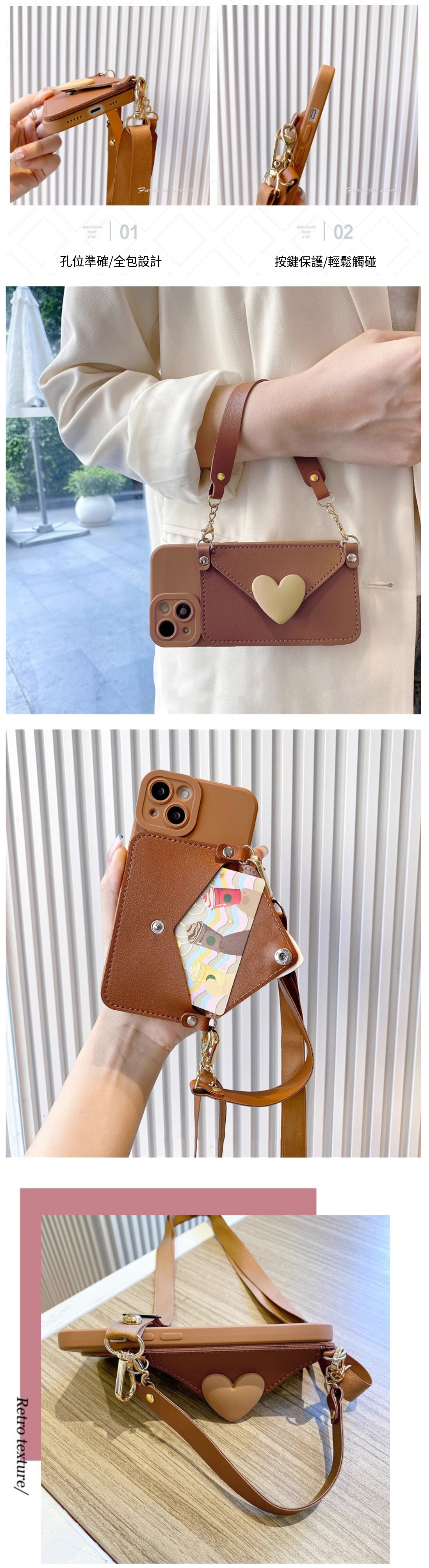 爆款瞳眼硅膠軟殼手機殼(JK奶咖愛心零錢包+手提+斜挎繩)(適用於蘋果)(下單後聯絡客服確認手機型號)