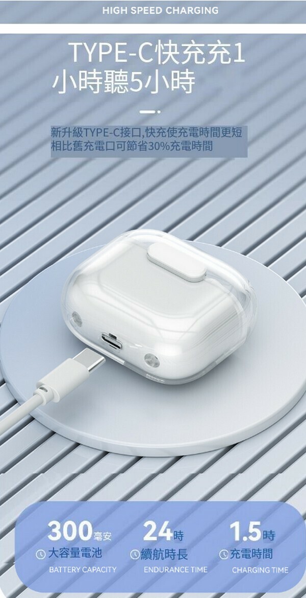 爆款半透明太空艙無線藍牙耳機-M15 藍色款