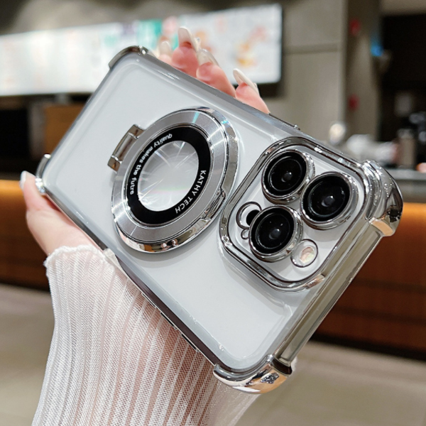 爆款透明電鍍氣囊磁吸支架手機殼(ZXC5銀色)(適用於蘋果)(下單後聯絡客服確認手機型號)