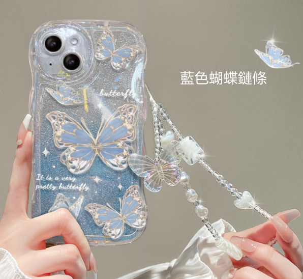 爆款透明硅膠漸變閃粉手機殼(GX1蓝色蝴蝶+手链)(適用於蘋果-華為)(下單後聯絡客服確認手機型號)