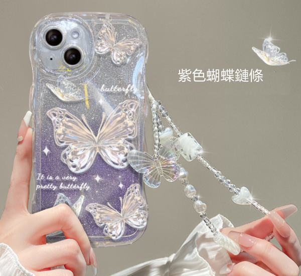 爆款透明硅膠漸變閃粉手機殼(GX2紫色蝴蝶+手链)(適用於蘋果-華為)(下單後聯絡客服確認手機型號)