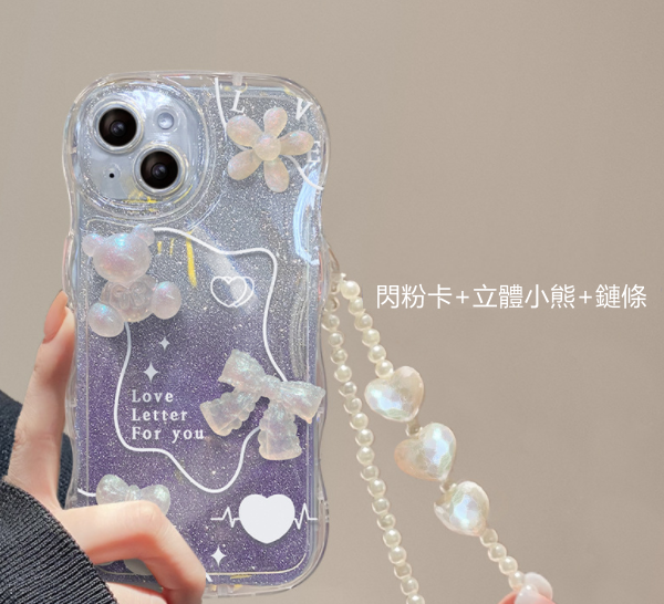 爆款透明硅膠漸變閃粉手機殼(GX4紫色立體小熊+手链)(適用於蘋果-華為)(下單後聯絡客服確認手機型號)