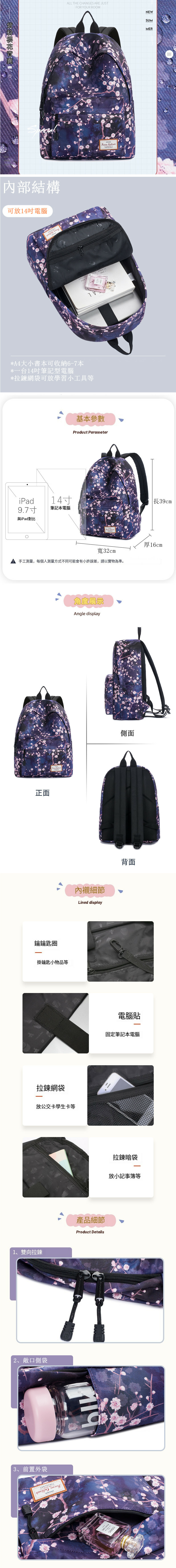 爆款背包潮人 旅行背囊 學生書包 電腦袋 行山背囊 【紫粉櫻花】