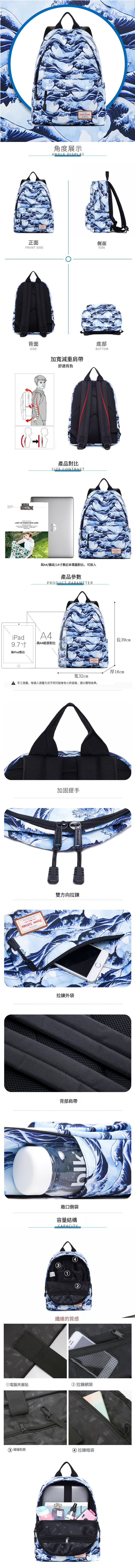 爆款背包潮人 旅行背囊 學生書包 電腦袋 行山背囊 【海浪之聲】