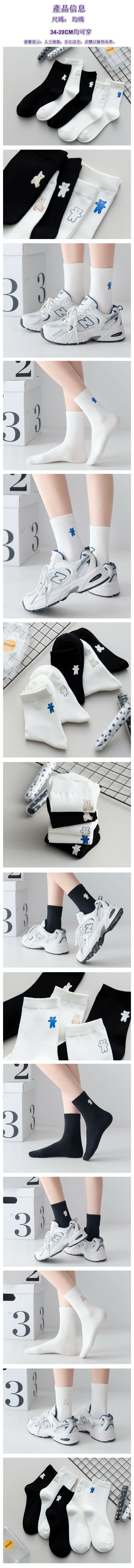 爆款潮流簡約可愛卡通小熊女棉襪 中筒襪 運動襪【白襪坐熊】【均碼】