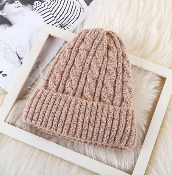 爆款麻花加絨馬海毛針織帽(A-111黑色)