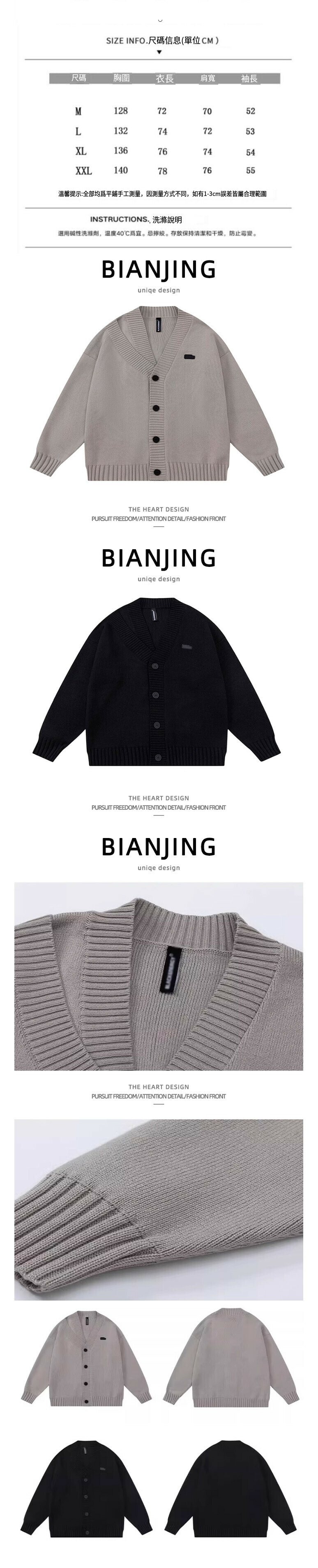 爆款V領針織開衫毛衣外套【灰色】(尺碼:S-2XL碼) (下單後請聯絡客服確認發貨尺碼)