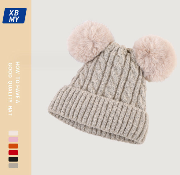 爆款加絨雙毛球套頭針織帽(A-113粉色)