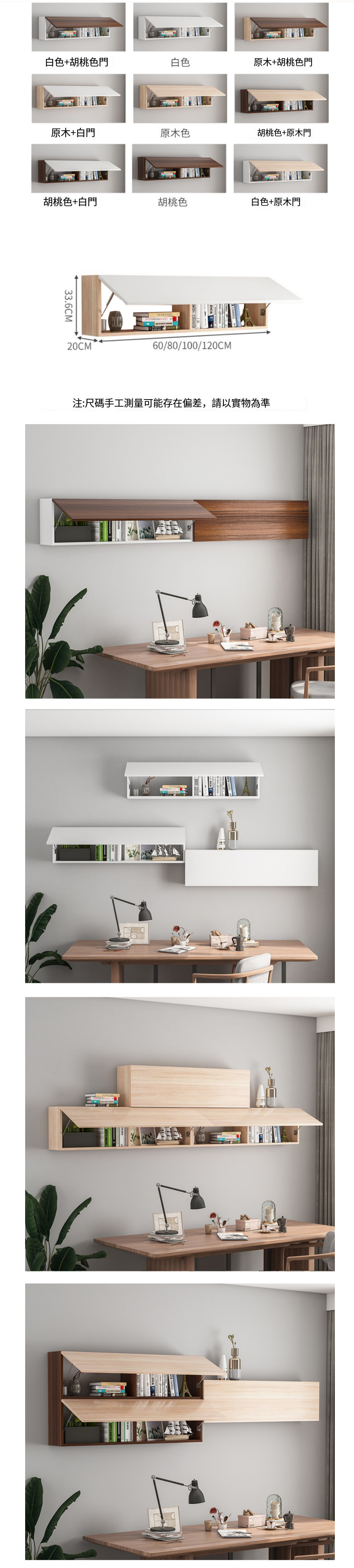 爆款牆上書櫃置物架(20*120胡桃框+白門 )