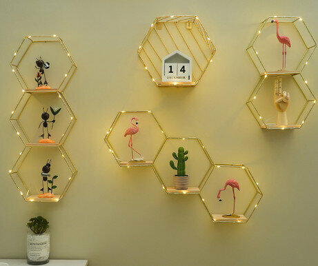 爆款壁掛裝飾置物架【薑黃色-斜三6邊】