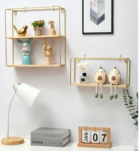 爆款壁掛裝飾置物架【金色二層】