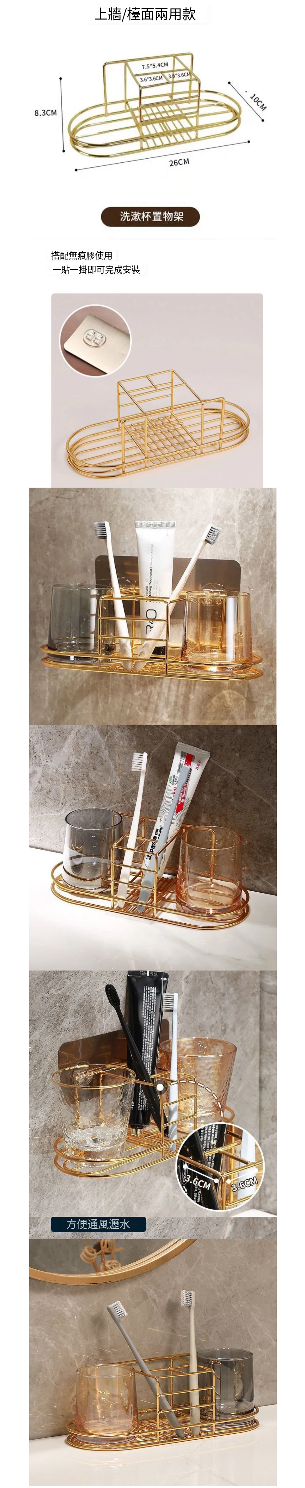 爆款壁掛式鐵藝浴室牙膏漱口杯置物架(電鍍金牙刷杯架-鐵藝)