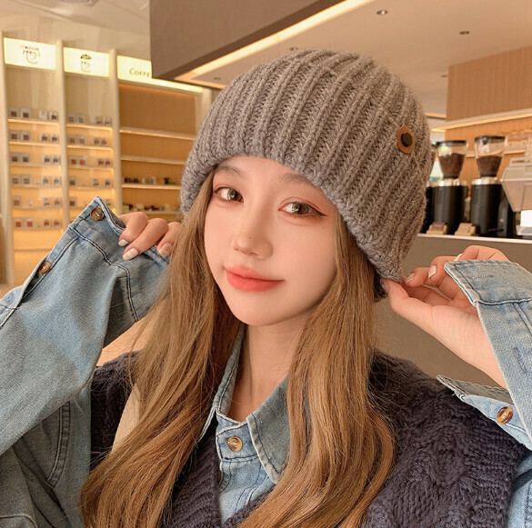 爆款保暖護耳套頭針織帽(A-489米白色)