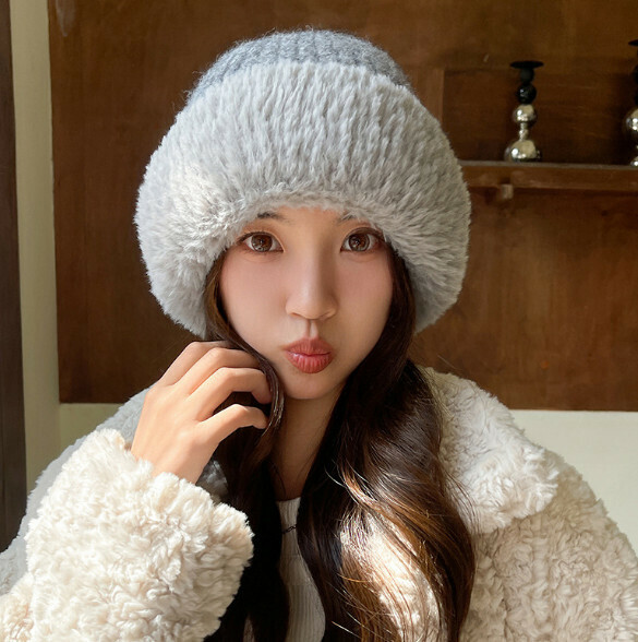 爆款保暖護耳毛絨針織(A-477卡其色)