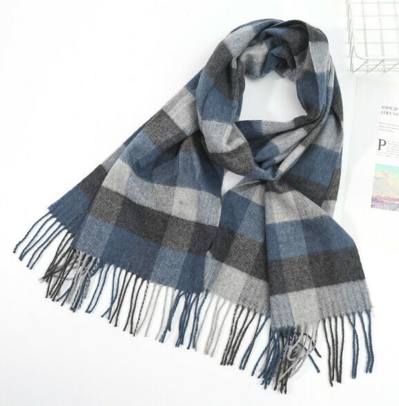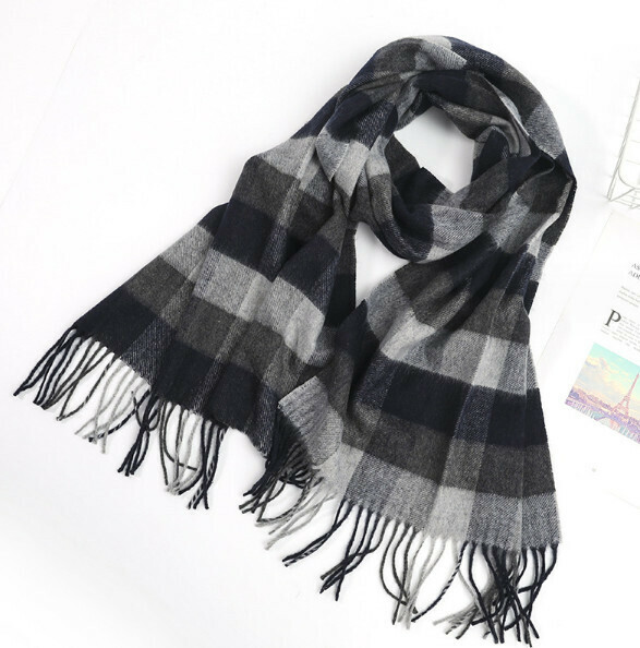 爆款保暖加厚羊毛格子圍巾(深灰淺灰藏青)(尺寸:200*45cm)