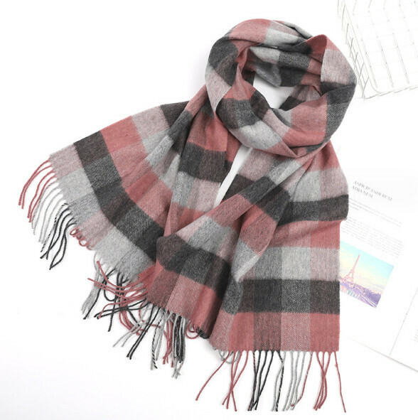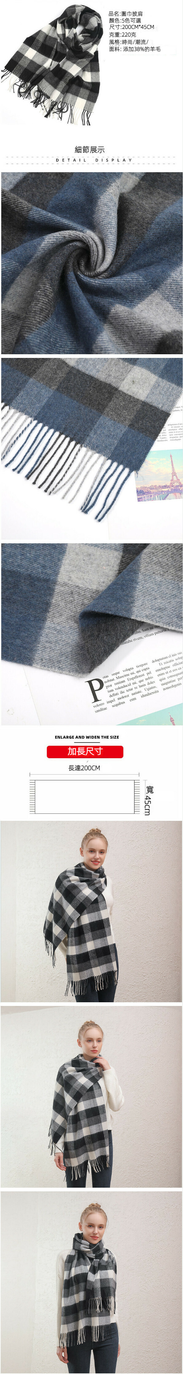 爆款保暖加厚羊毛格子圍巾(深灰淺灰棕色)(尺寸:200*45cm)
