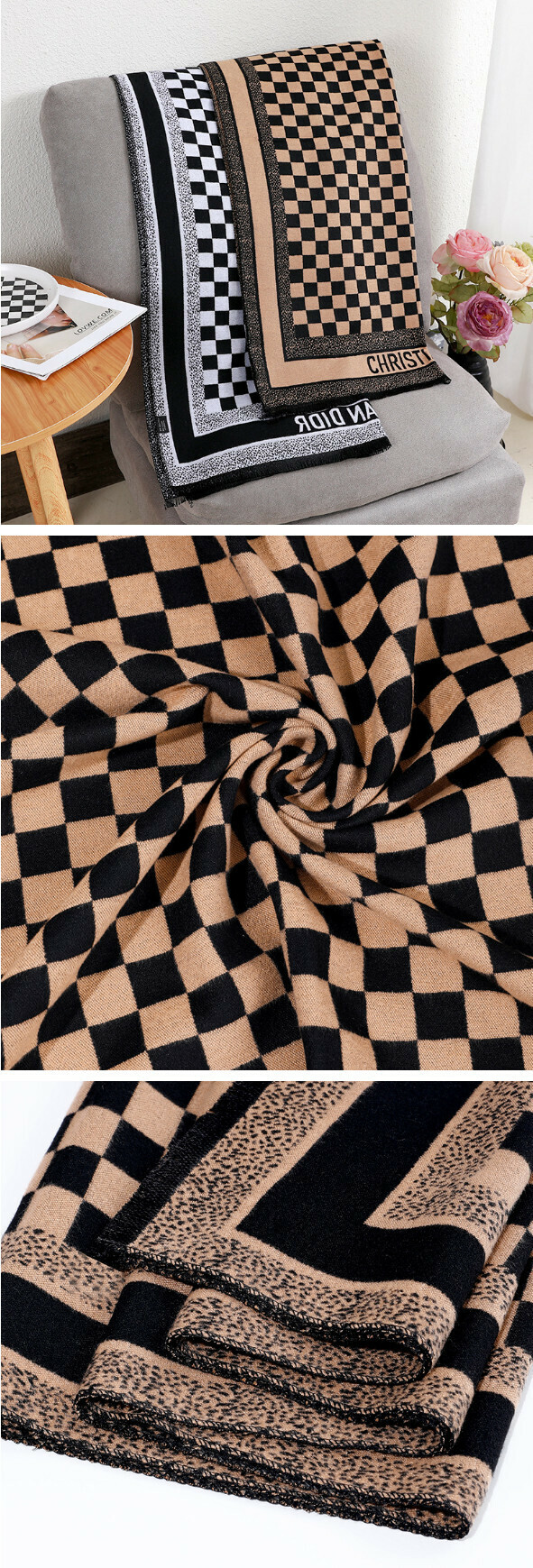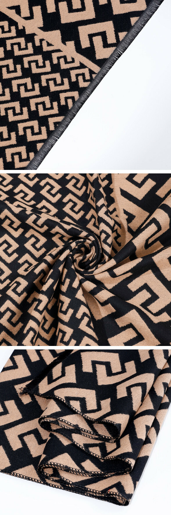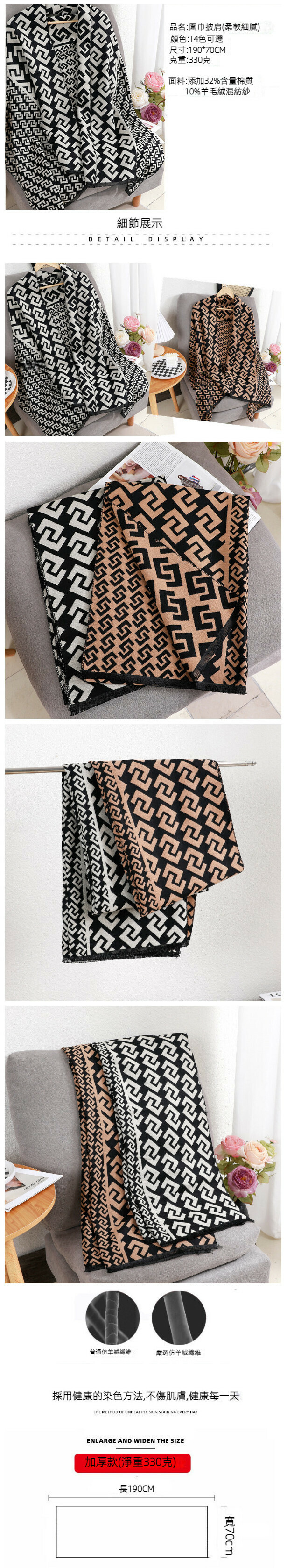 爆款保暖提花羊毛羊絨圍巾(H款-黑色千鳥格)(尺寸:190*70cm)