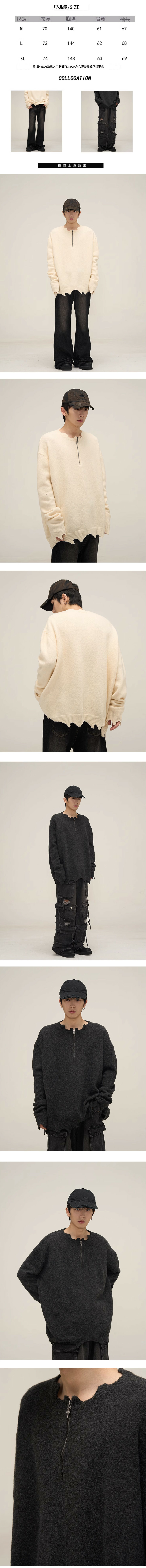 爆款破壞廢土風半拉鍊毛衣【杏色M-XL碼,下單後與客服確認發貨尺碼】
