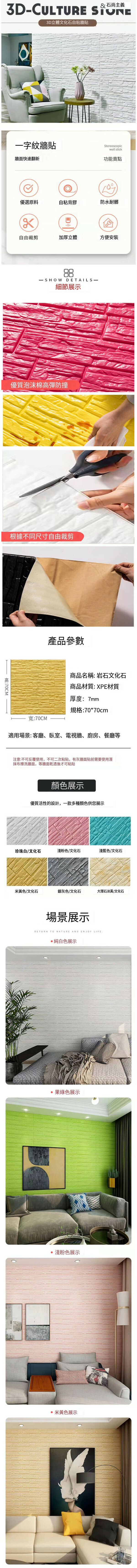 爆款防水防潮自粘3d立體石頭紋墻貼墻壁紙【巖石文化石淺藍】【70cm*70cm*7mm】