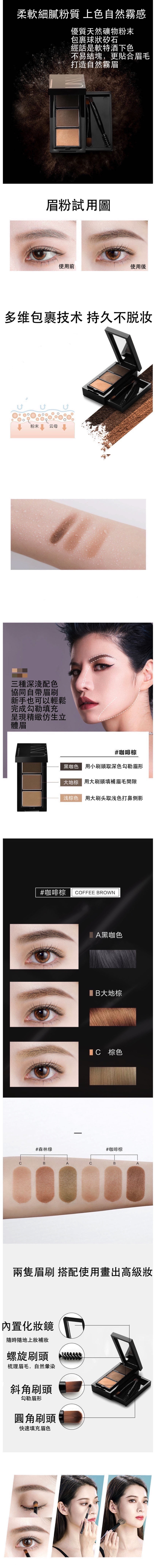 爆款防水防汗三色眉粉盤(咖啡棕)