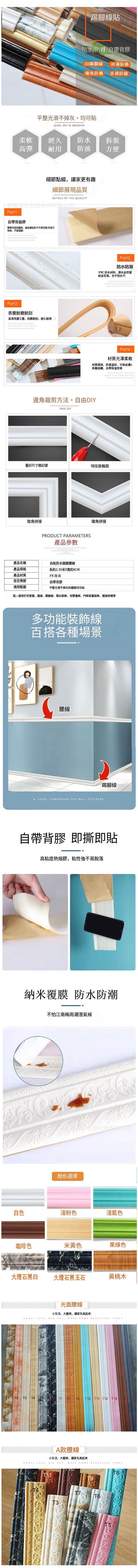 爆款防水防潮防汙自粘3d立體墻貼墻紙【邊條光面-淺藍色】【2.3m*8cm*8mm】