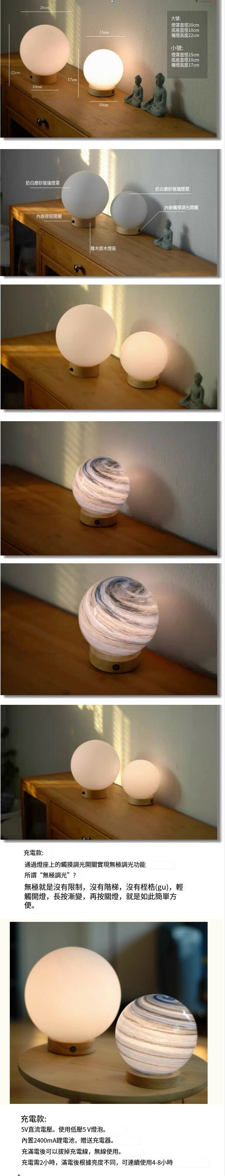 爆款白色磨砂玻璃球形檯燈(星空氣泡中號|充電款橡木燈座|直徑20cn)