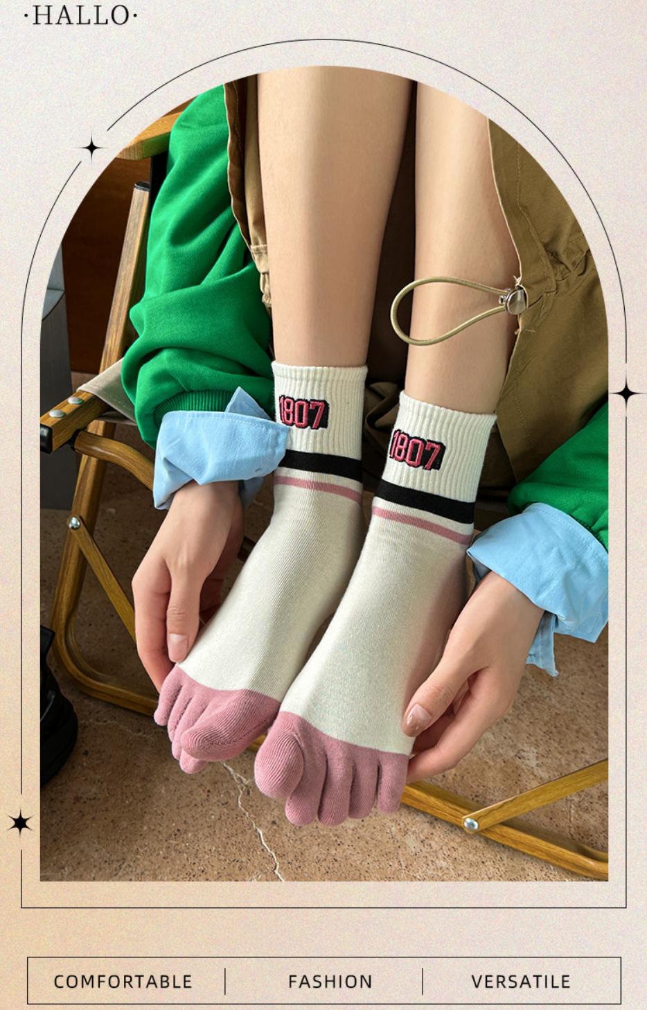 熱推女中筒刺繡五指襪(TWO)(均碼)