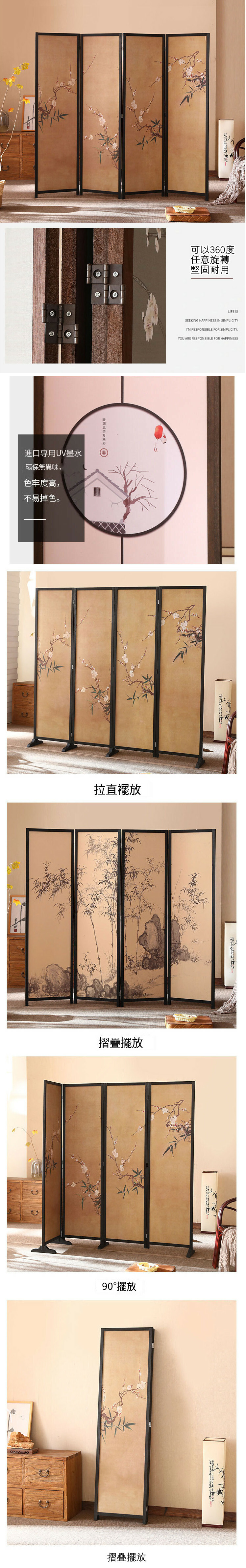 爆款木藝傢具(共4片) 辨公室屏風 玄關分隔 客廳屏風【圖案4】共4片 180x50cmx4片