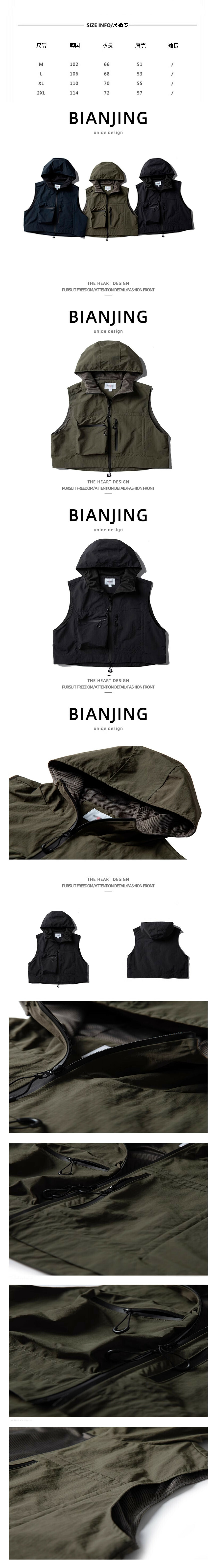 爆款工裝連帽馬甲背心外套【綠色】(尺碼:S-3XL碼) (下單後請聯絡客服確認發貨尺碼)