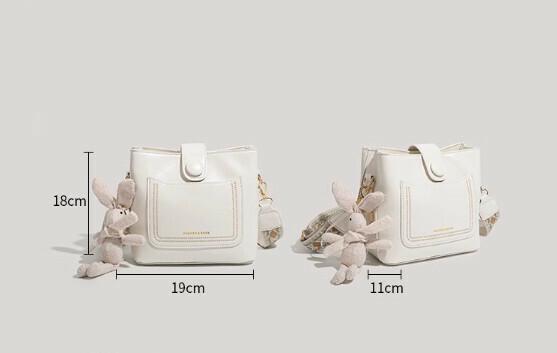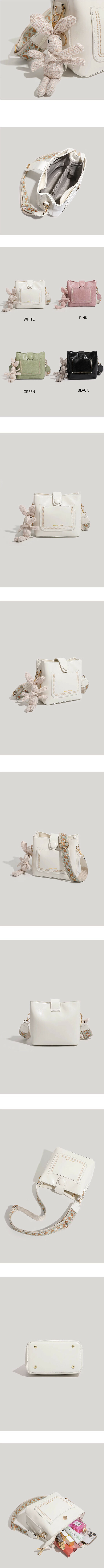 爆款編織寬肩帶pu皮水桶單肩斜挎包(米白色)