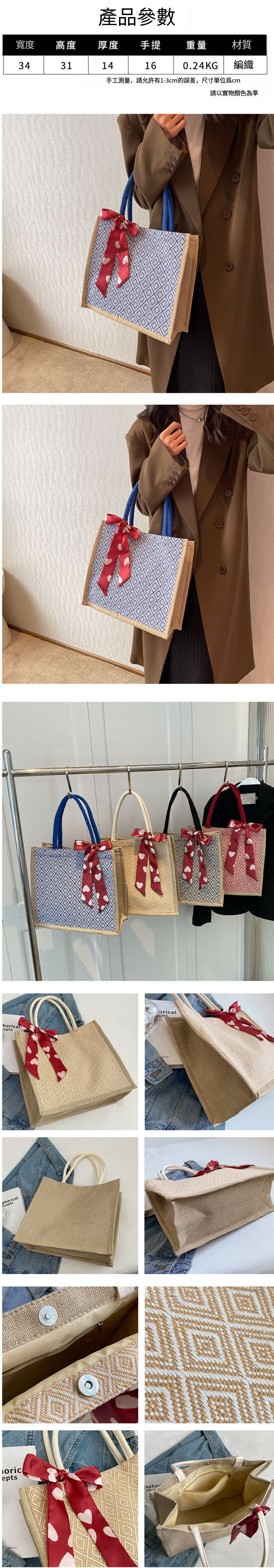 新款手提通勤包大容量亞麻托特包(藍色 )