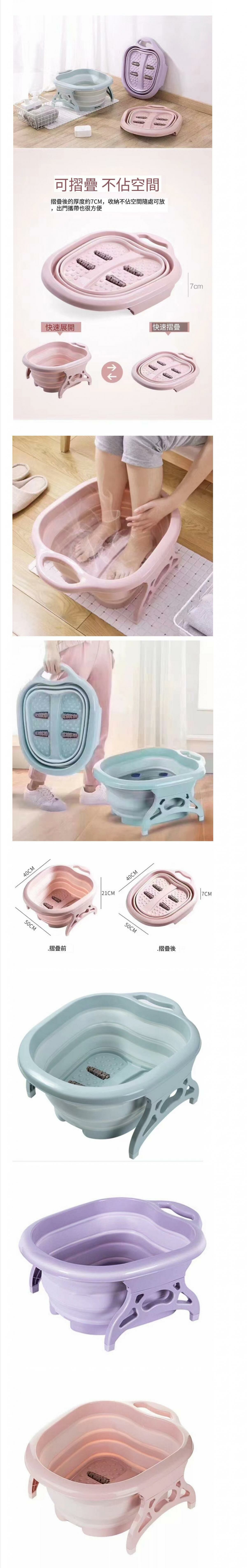 激抵便攜式可折疊足浴盆·滾輪按摩盆·泡腳盆·足底按摩洗腳桶(藍色)