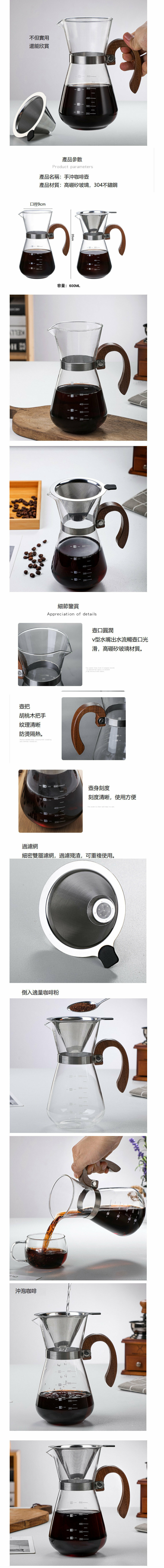 爆款手沖咖啡壺套裝 帶不鏽鋼過濾網 木質手柄 耐高溫冷凍 600ml