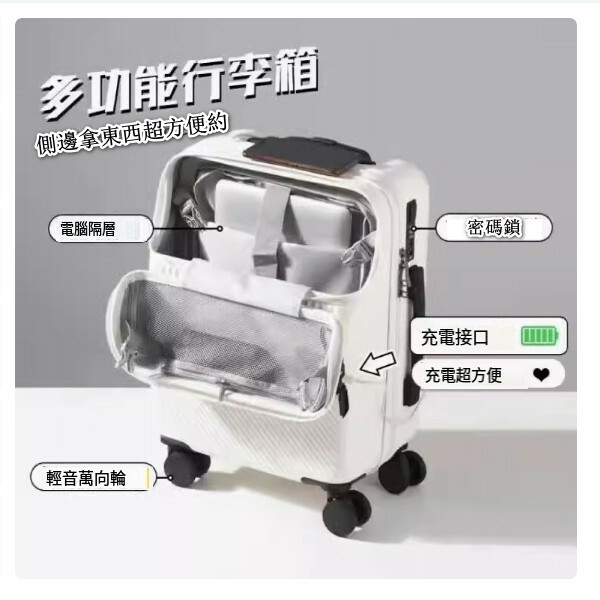 【前置取物】20吋(無側提)行李箱多功能拉杆箱密碼箱--酒紅色