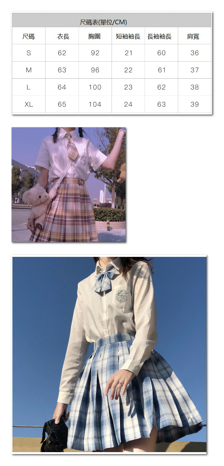 熱推學院風刺繡短袖女襯衫(白色)(尺碼:S-XL)(下單後聯絡客服確認發貨尺碼)