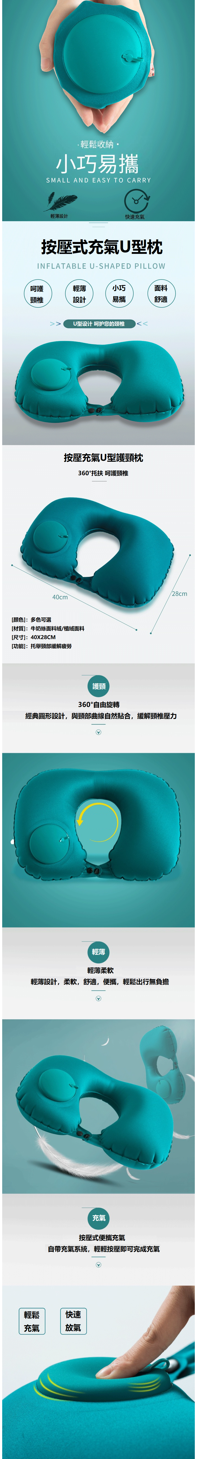 爆款按壓式充氣U型枕 休息靠枕護頸枕(灰色-植絨U型枕)