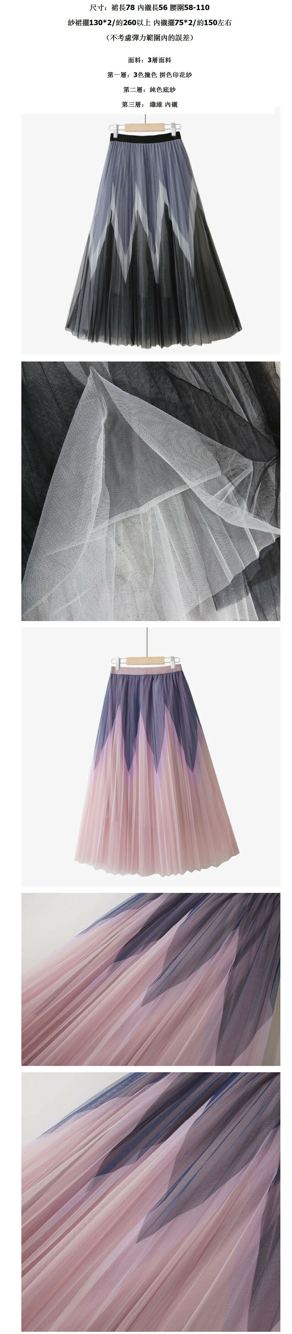 爆款印花撞色百褶半身裙【黑灰腰/白條拼黑底-均碼 鬆緊腰】