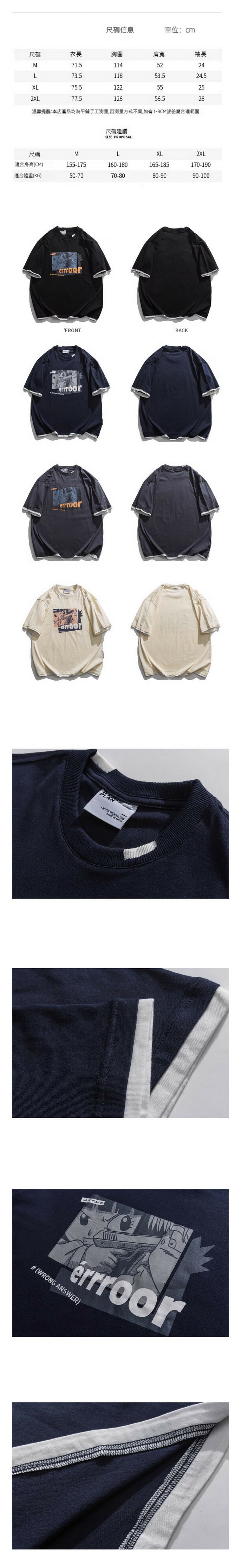 新款印花假兩件短袖T卹(藏青色)【M-2XL碼】【下單後聯絡客服確認發貨尺碼】